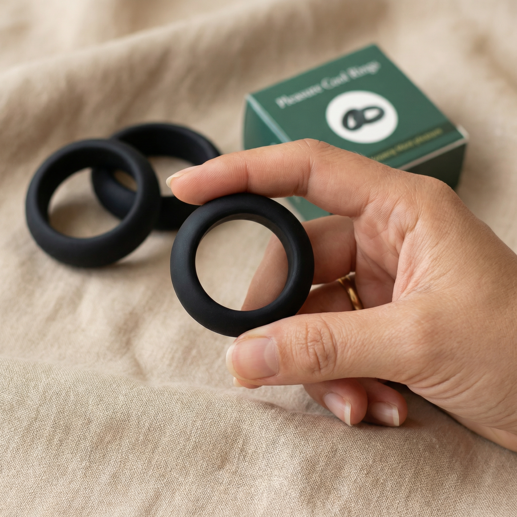 De ringen zijn gemaakt van premium siliconen dat veilig is voor intiem gebruik. Dit materiaal voelt zacht aan op de huid en is vrij van schadelijke stoffen. De afgeplatte binnenkant verdeelt de druk gelijkmatig, wat het draagcomfort vergroot. Siliconen is bovendien makkelijk te reinigen en gaat lang mee bij goed onderhoud.